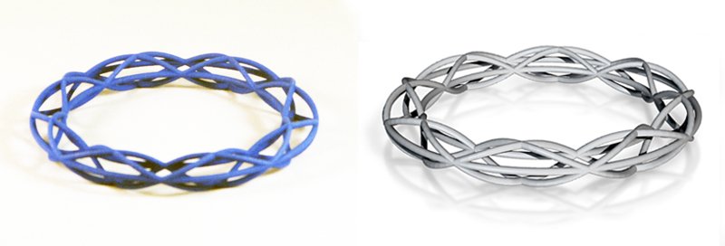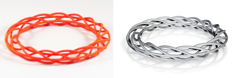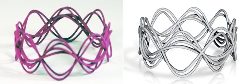 Twisty Twist Bangle A02 This bangle is constructed by two twisting rods covering four revolutions of 360 degrees each, they are only held together by two circular rods, one on the inside, and one on the outside of the bangle. |