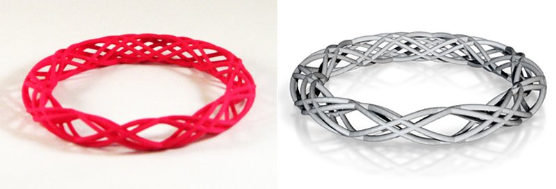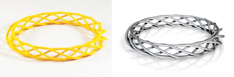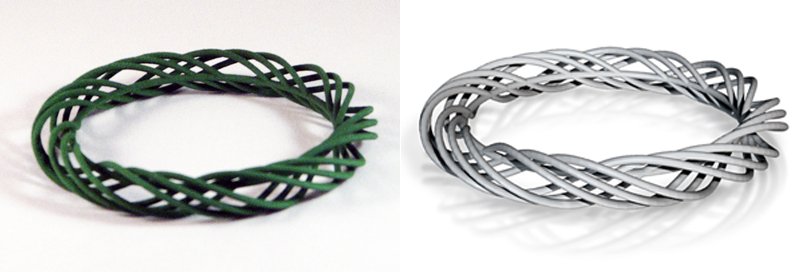 Twisty Twist Bangle A03 This bangle is constructed by two twisting rods covering four revolutions of 360 degrees each, they are only held together by two circular rods, one on the top, and one on the bottom of the bangle. |