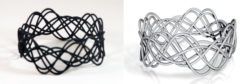 Twisty Twist Bangle C02 This bangle is constructed by three twisting rods covering four revolutions of 360 degrees each, they are only held together by a single circular rod on the inside of the bangle. |