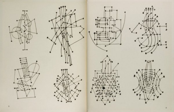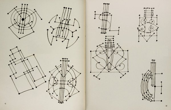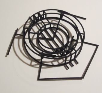 Forward to November of 2015. I continued to research the drawings and found that many were scattered among different websites, but at least one, the PicassoLive.ru website contained all 16 plates. Further research found Lynn Becker’s blog covering the Picasso and Chicago exhibition and offered similar observations I had plus background on the drawings and their possible relationship to the 1928 wireframe sculpture Picasso proposed for the memorial to his late friend, the poet Guillaume Apollinaire. More research found the 2004 web piece by Peter Read written for the official Picasso Administration website. Read discusses "These are lyrical and fluid variations on the shape of the guitar, with dots and lines inspired by astronomical charts displaying the constellations" and "dot-and-line graphic style as a potential template for a monument to Apollinaire". With this background, I selected one of the images as a prototype from Plate C and started to develop software tools that could translate the 2D image into lines; a simple trace did that. The next step was to separate the different graphics elements of the image; circles and lines. Strategies were explored of how to express the 2D image in 3D. The first concept was to simply to extrude or place each graphic element at differing elevations and then connect them vertically or horizontally. The goal was to always make sure that the plan view of the 3D model was exactly the same as the original 2D image. Automated procedures were next developed to place a 3D sphere at each intersection or node, and connect each set of nodes with a 3D pipe. As you can see by the models displayed below, there is a great variety of possibilities of where the different graphic elements of circles and lines can be placed. The simple wireframe models, made of pipes and nodes exhibit a simple architectural identifiable form. Scale could easily be increased to represent floor and planes for full-scaled versions. After a number of explorations, finally by November of 2016, the initial set of models were ready to 3D print. Approximate dimensions of the 3D printed black plastic models: 4.5" x 4" x 0.75" References: ArchitectureChicago PLUS Blog by Lynn Becker: Pablo's Wireframes: The Architecture of Picasso's Dots and Lines A reproduction of the complete set of Picasso's illustrations, 16 plates can be found at: PicassoLive.ru Painting as a Site of Cultural Memory: Picasso's The Kitchen Peter Read, University of St. Andrews, Scotland, 2004, written for the official Picasso Administration website: Picasso's The Kitchen |