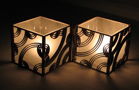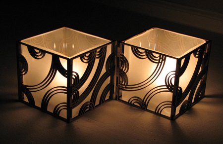 Paths Votive Candle Holders 3" cube, frosted glass votive, 1/8" wood Each piece is unique |